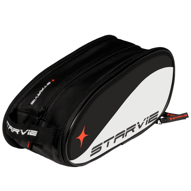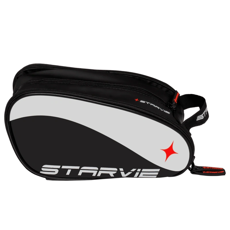 STARVIE Wave padeli tarvikutekott on elegantse musta disainiga, valgete detailide ja ikoonilise punase tähega. Sellel on avar keskne sahtel ja kaks lisakülgtaskut väiksemate esemete korrastamiseks. Funktsionaalne ja isikupärane aksessuaar, mis sobib ideaalselt treeninguks, reisimiseks või igapäevaseks kasutamiseks.